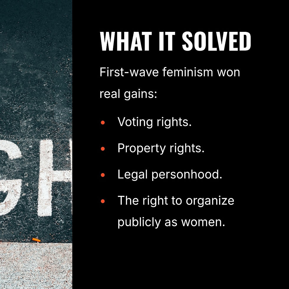 First-wave feminism was not a comprehensive liberation project. It was a targeted response to a specific set of legal and political barriers facing certain women - and it succeeded and failed accordingly.
