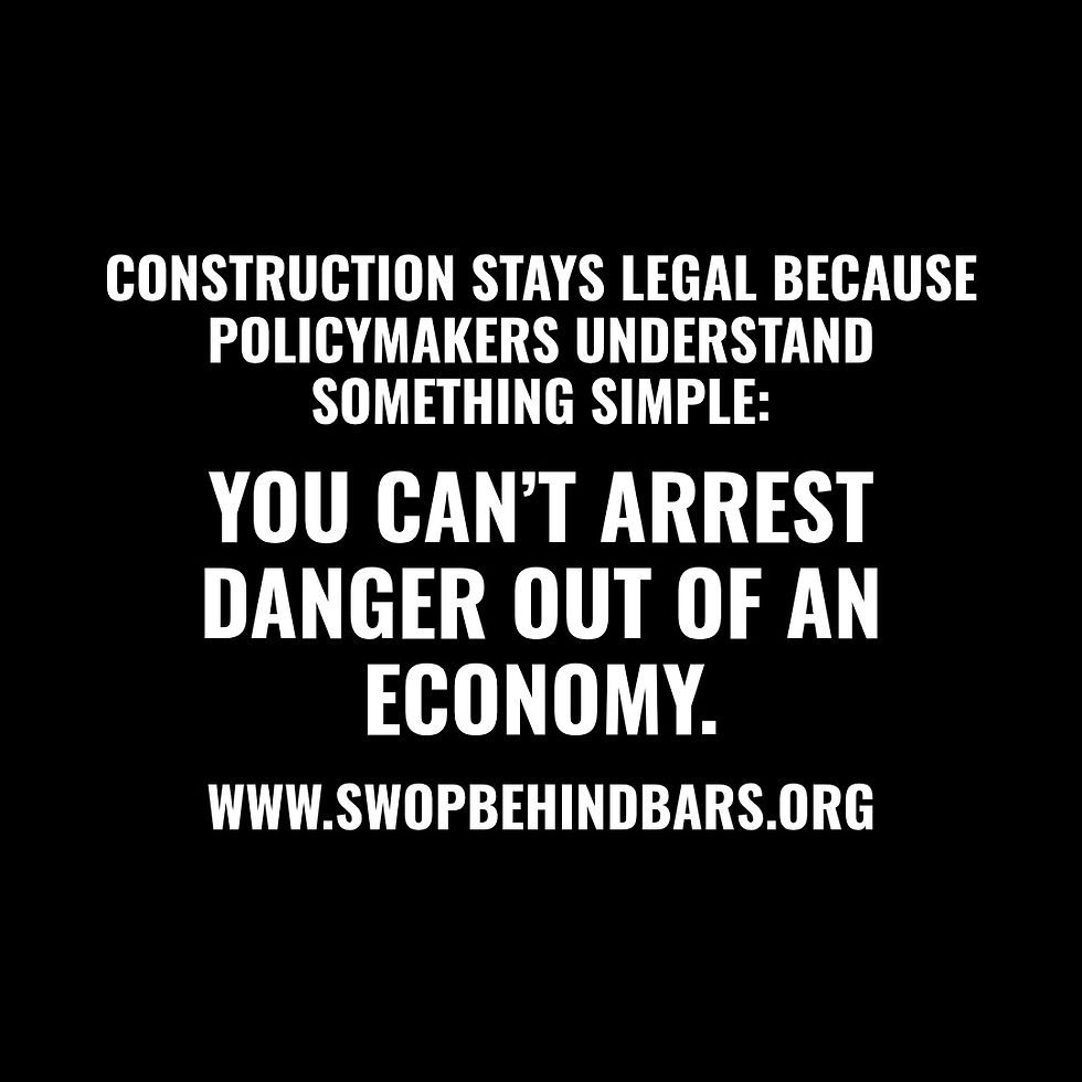 Police might raid job sites the way law enforcement currently raids underground economies. Workers holding drills, ladders, or nail guns could be arrested for engaging in dangerous labor. Contractors organizing crews might face charges for facilitating hazardous work. Property owners hiring someone to repair a roof or pour a foundation could be prosecuted for creating demand.